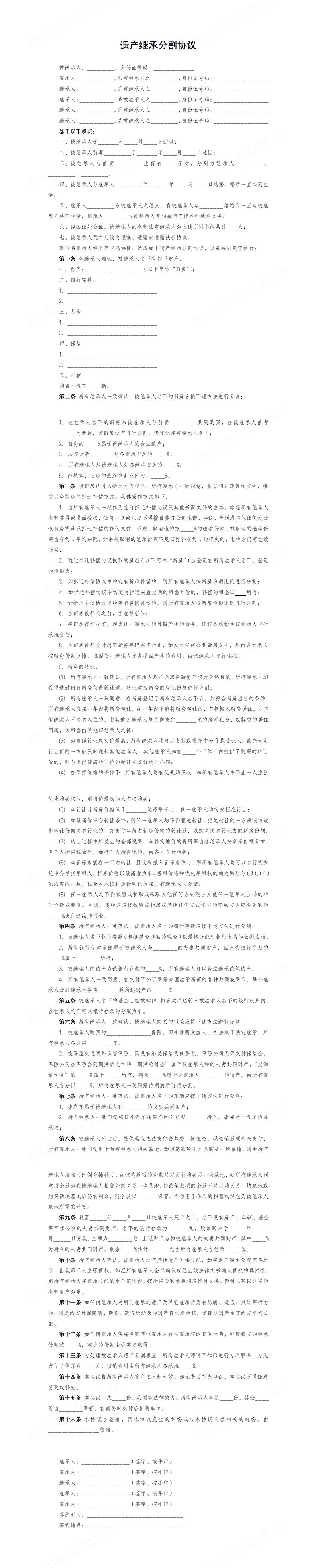 (9)任一继承人均不得截留或扣取或采取其他任何方式侵占其他任一继承人应得的转让价款或租金,否则,违约方应按截留或扣取或其他任何方式侵占的守约方的应得金额的____%支付违约赔偿金。
