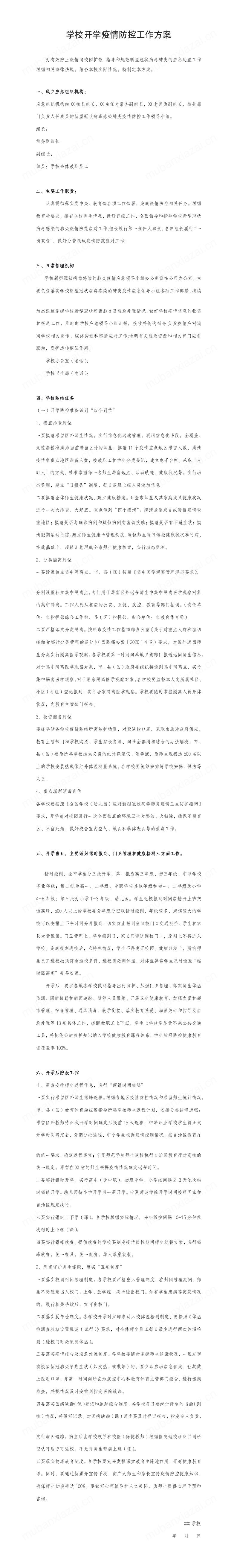 学校开学疫情防控工作方案